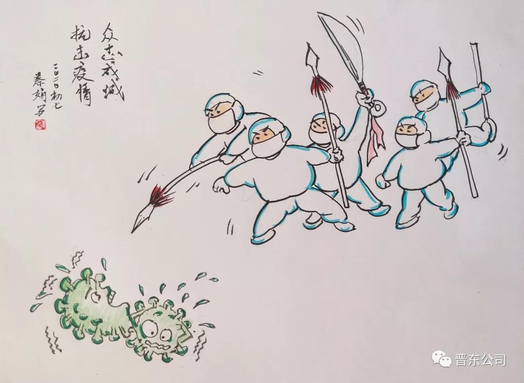 特能集團(tuán)晉東公司所屬包裝材料公司職工、退伍軍人周治國自費(fèi)購買100公斤消毒液和100個口罩,免費(fèi)送給周圍居民群眾,受到大家好評點贊!后續(xù)購買的300個口罩正在運(yùn)輸中。晉東青年女兵工蔡娟、吳瓊精心創(chuàng)作“眾志成城、共抗疫情”系列主題漫畫,請微觀。