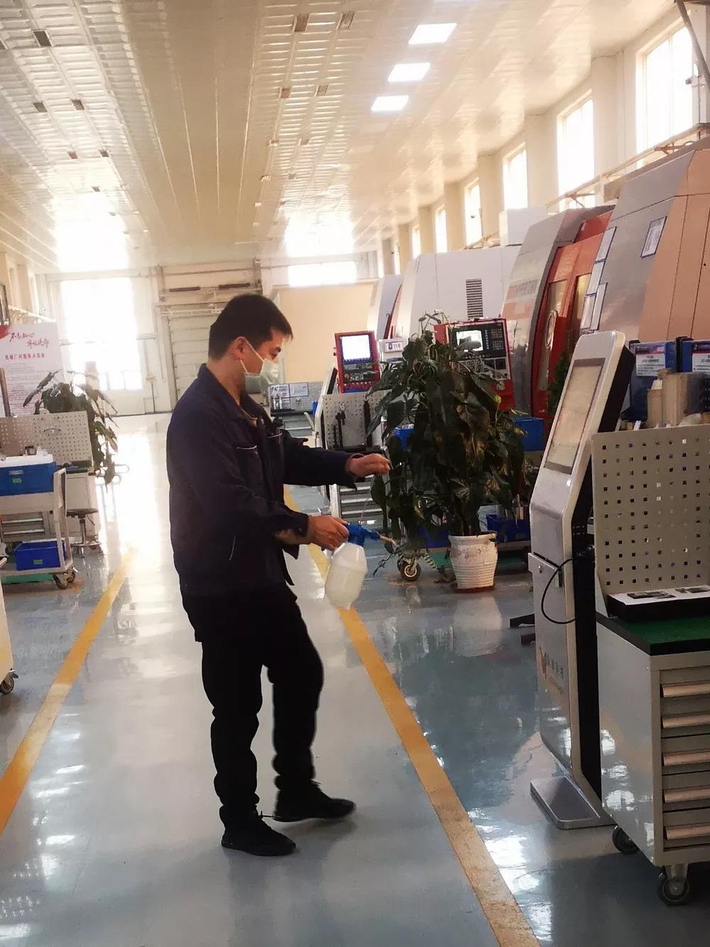 一機(jī)集團(tuán)對出入人員進(jìn)行體溫檢測;對各辦公場所、生產(chǎn)現(xiàn)場均利用消毒液進(jìn)行消毒。同時積極開展測溫儀、體溫計、消毒液、紫外線消毒燈、防護(hù)口罩等物資籌備,做好假期后生產(chǎn)啟動準(zhǔn)備。