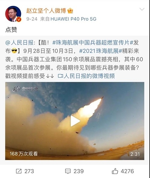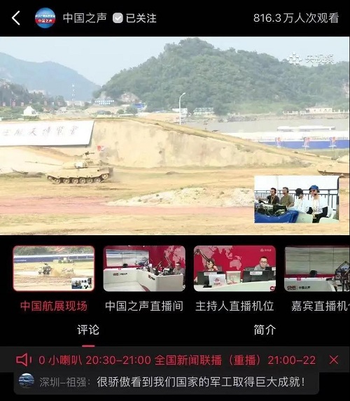 9月28日-10月3日,第十三屆中國國際航空航天博覽會在廣東珠海舉行,中國兵器工業(yè)集團有限公司作為主辦單位閃耀亮相,推出裝甲突擊、火力打擊、智能彈藥、防空反導、無人裝備、非傳統(tǒng)安全、軍工軍技合作等領域新產(chǎn)品及成體系成建制武器系統(tǒng)和解決方案,全方位展示我國陸軍外貿(mào)武器裝備的最高水平以及雄厚的科技創(chuàng)新、自主研發(fā)與先進制造能力,受到廣泛關注。 央視《新聞聯(lián)播》報道第十三屆中國航展,著重介紹了VT4主戰(zhàn)坦克,關注航展公眾日中國兵器館情況。9月28日下午央視《新聞直播間》航展特別節(jié)目《藍天盛會》邀請集團公司訪談嘉賓做客直播間對中國兵器館兵器工業(yè)集團展區(qū)等進行1小時直播;9月28日下午、10月2日下午分別對地面裝備動態(tài)表演進行兩場直播。央視《朝聞天下》、《新聞直播間》、《共同關注》、《天下財經(jīng)》、《軍事報道》、《正午國防軍事》、《軍武零距離》等相繼推出集團公司參展裝備的報道。 人民日報、新華社、中國日報、共青團中央、國資小新、騰訊軍事、鳳凰軍事、新浪軍事等新媒體發(fā)布的集團公司航展宣傳片等視頻作品燃爆全網(wǎng),閱讀量突破三千萬人次,得到外交部發(fā)言人趙立堅轉(zhuǎn)載點贊。集團公司微信、微博、抖音號、微信視頻號等新媒體宣傳片播放閱讀量超過400萬人次。同時,央視新聞、新華社、中國之聲、央視軍事、央視新媒體、解放軍報、共青團中央、國資小新、環(huán)球時報等多家媒體對集團公司靜、動態(tài)展區(qū)進行現(xiàn)場直播,在電視端、客戶端、微信視頻號、微博、B站、快手、抖音等平臺受到高度關注。著名軍事專家杜文龍、央視主持人顧國寧、央廣中國之聲主持人王藝等直播兵器館、動態(tài)表演區(qū)裝備。 《參考消息》、新華網(wǎng)、央廣網(wǎng)、中國日報、科技日報、解放軍報、人民網(wǎng)、中國新聞網(wǎng)、中國青年網(wǎng)、中國網(wǎng)、中工網(wǎng)、央視網(wǎng)、環(huán)球網(wǎng)、騰訊網(wǎng)、新浪網(wǎng)、鳳凰網(wǎng)、搜狐網(wǎng)、網(wǎng)易網(wǎng)、今日頭條等中央主流媒體和知名網(wǎng)絡媒體以及南方日報、廣東電視臺、北京電視臺、新京報、珠海傳媒集團、深圳衛(wèi)視等省市媒體對集團公司參展情況進行了圖片、文字、視頻報道。 航展期間,備受關注的中國兵器館,參觀的觀眾絡繹不絕。 |
