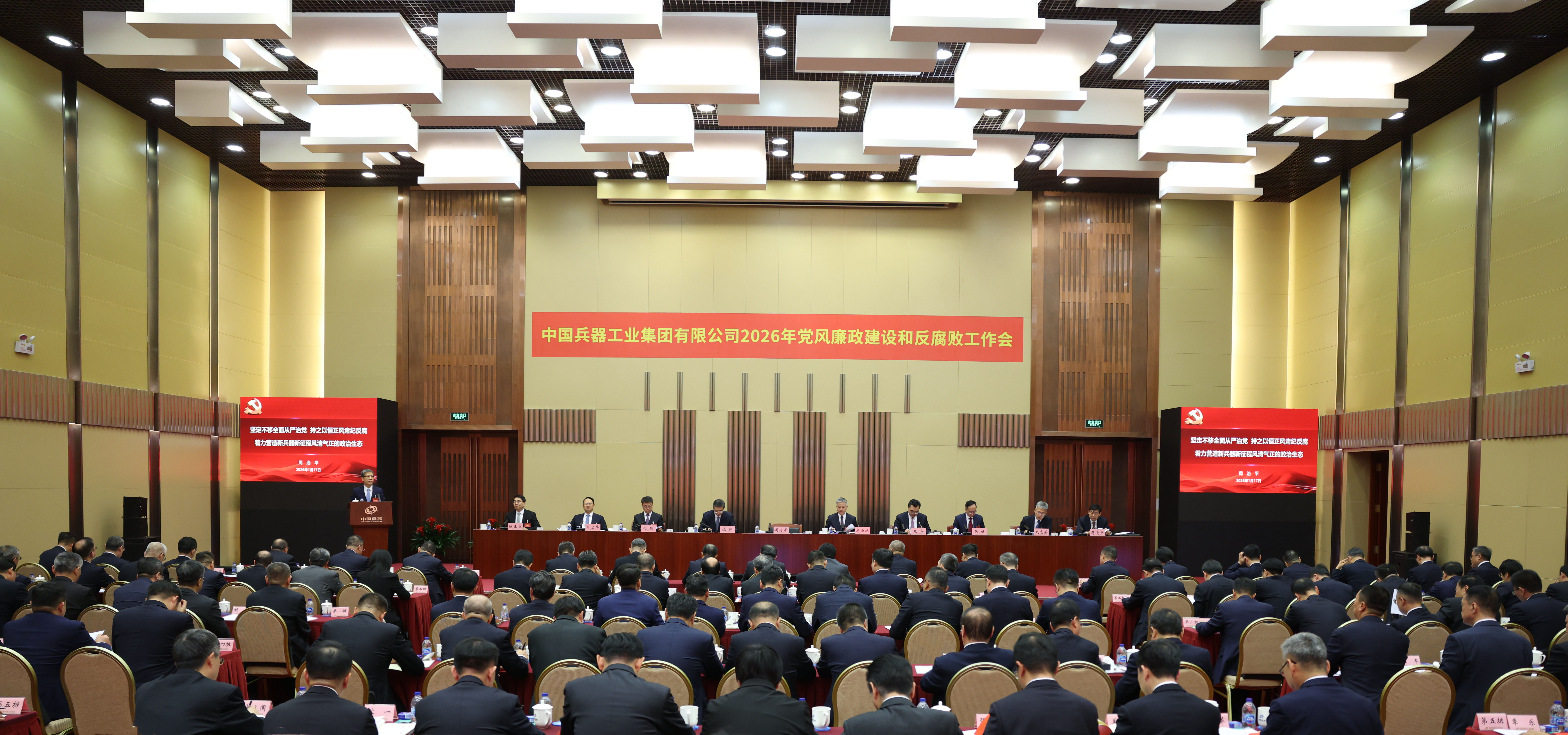 1月17日,中國兵器工業(yè)集團(tuán)有限公司召開2026年黨風(fēng)廉政建設(shè)和反腐敗工作會議,會議以習(xí)近平新時代中國特色社會主義思想為指導(dǎo),深入學(xué)習(xí)貫徹黨的二十大和二十屆四中全會精神,全面貫徹落實二十屆中央紀(jì)委五次全會精神,總結(jié)工作、部署任務(wù),以更高標(biāo)準(zhǔn)、更實舉措推進(jìn)全面從嚴(yán)治黨,為實現(xiàn)集團(tuán)公司“十五五”時期目標(biāo)任務(wù)提供堅強(qiáng)保障。集團(tuán)公司黨組書記、董事長周治平作了《堅定不移全面從嚴(yán)治黨,持之以恒正風(fēng)肅紀(jì)反腐,著力營造新兵器新征程風(fēng)清氣正的政治生態(tài)》的講話,并與集團(tuán)公司各部門、各子集團(tuán)和直管單位簽訂《黨風(fēng)廉政責(zé)任書》。駐集團(tuán)公司紀(jì)檢監(jiān)察組組長、集團(tuán)公司黨組成員陳正云傳達(dá)了二十屆中央紀(jì)委五次全會精神,通報了駐集團(tuán)公司紀(jì)檢監(jiān)察組2025年重點工作和查處典型案件暴露出來的問題并提出意見要求。集團(tuán)公司總經(jīng)理、黨組副書記馬云雙主持會議。