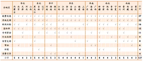 在政策使用比例方面,稅費優(yōu)惠政策超過90%,其次為用地支持、財政補貼和容積率均超過50%,最后依次是專項資金、信貸支持、行業(yè)扶持、審批、評獎、消費引導(dǎo)。